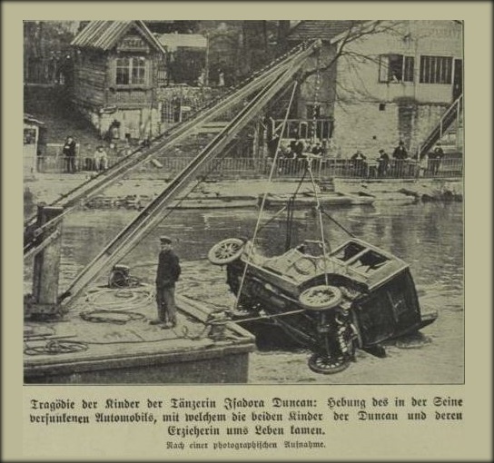 In 1913, Isadora’s two children, Deirdre Beatrice and Patrick Augustus, were killed along with their nanny in an automobile accident when their car ran off a bridge into the Seine River in Paris.